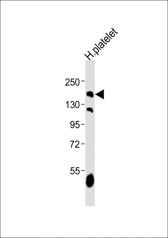 Anti-PDGFRA-pY720. ctrlat 1:1000 dilution + human platelet lysates Lysates/proteins at 20 μg per lane. Secondary Goat Anti-Rabbit IgG, (H+L), Peroxidase conjugated at 1/10000 dilution Predicted band size : 123 kDa Blocking/Dilution buffer: 5% NFDM/TBST.