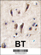 Formalin-fixed and paraffin-embedded human brain tissue reacted with TIE antibody (N-term), which was peroxidase-conjugated to the secondary antibody, followed by DAB staining. This data demonstrates the use of this antibody for immunohistochemistry; clinical relevance has not been evaluated. |