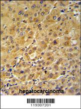 FKBP1A Antibody (C-term) (Cat. APR06008G) IHC analysis in formalin fixed and paraffin embedded human hepatocarcinoma followed by peroxidase conjugation of the secondary antibody and DAB staining. This data demonstrates the use of the FKBP1A Antibody (C-term) for immunohistochemistry. Clinical relevance has not been evaluated.