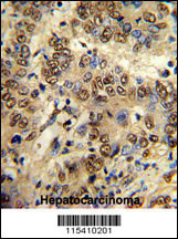 Formalin-fixed and paraffin-embedded human hepatocarcinoma reacted with PK3CA Antibody (Y317), which was peroxidase-conjugated to the secondary antibody, followed by DAB staining. This data demonstrates the use of this antibody for immunohistochemistry; clinical relevance has not been evaluated.