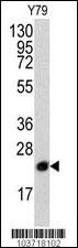 Western blot analysis of anti-PBP Pab (RB03718) in Y79 cell line lysates (35ug/lane). PBP(arrow) was detected using the purified Pab.