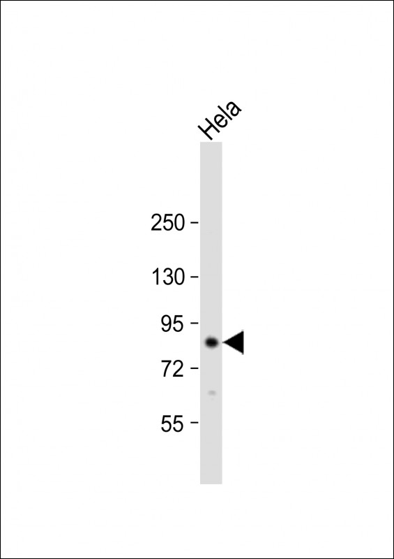 Anti-IKKalpha Antibody at 1:1000 dilution + Hela whole cell lysate Lysates/proteins at 20 μg per lane. Secondary Goat Anti-Rabbit IgG, (H+L), Peroxidase conjugated at 1/10000 dilution. Predicted band size : 85 kDa Blocking/Dilution buffer: 5% NFDM/TBST.
