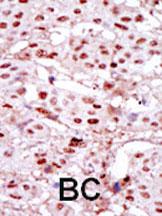 Formalin-fixed and paraffin-embedded human cancer tissue reacted with the primary antibody, which was peroxidase-conjugated to the secondary antibody, followed by DAB staining. This data demonstrates the use of this antibody for immunohistochemistry; clinical relevance has not been evaluated. BC = breast carcinoma |