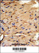 Formalin-fixed and paraffin-embedded mouse heart tissue reacted with PEA-15 Antibody (C-term), which was peroxidase-conjugated to the secondary antibody, followed by DAB staining. This data demonstrates the use of this antibody for immunohistochemistry; clinical relevance has not been evaluated. |