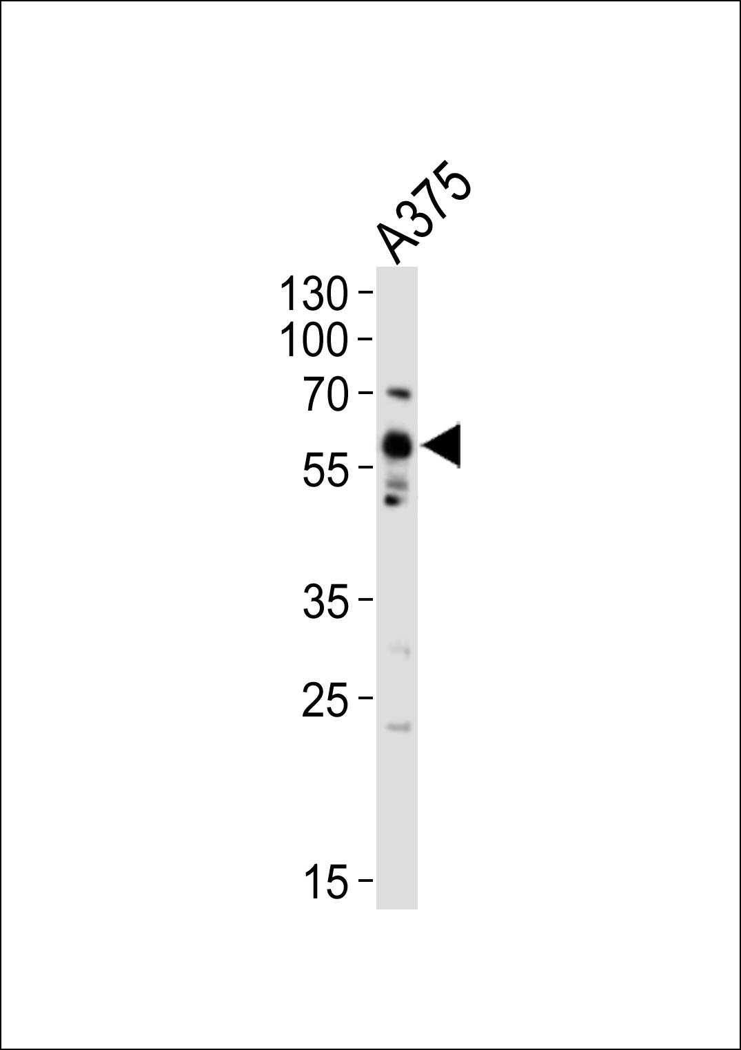 Western blot analysis of lysate from A375 cell line, using SRC Antibody (Y419)(APR06101G). APR06101G was diluted at 1:1000. A goat anti-rabbit IgG H&L(HRP) at 1:10000 dilution was used as the secondary antibody. Lysate at 20ug.