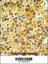 Formalin-fixed and paraffin-embedded human hepatocarcinoma with Phospho-SRC-Y419.ctrl, which was peroxidase-conjugated to the secondary antibody, followed by DAB staining. This data demonstrates the use of this antibody for immunohistochemistry; clinical relevance has not been evaluated. |