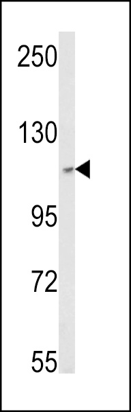 Western blot analysis of SKIV2L2 Antibody (Center) (Cat. APR06118G) in MCF-7 cell line lysates (35ug/lane). SKIV2L2 (arrow) was detected using the purified Pab.