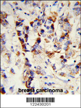 Formalin-fixed and paraffin-embedded human breast carcinoma reacted with SKIV2L2 Antibody (Center), which was peroxidase-conjugated to the secondary antibody, followed by DAB staining. This data demonstrates the use of this antibody for immunohistochemistry; clinical relevance has not been evaluated.