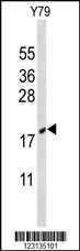 Western blot analysis of CIRBP Antibody (C-term) (Cat. APR06147G) in Y79 cell line lysates (35ug/lane). CIRBP (arrow) was detected using the purified Pab.
