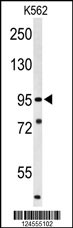 Western blot analysis of SUPV3L1 Antibody (N-term) (Cat. APR06194G) in K562 cell line lysates (35ug/lane). SUPV3L1 (arrow) was detected using the purified Pab.