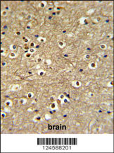 ETS2 Antibody (Center) (Cat. APR06204G) IHC analysis in formalin fixed and paraffin embedded brain tissue followed by peroxidase conjugation of the secondary antibody and DAB staining. This data demonstrates the use of the ETS2 Antibody (Center) for immunohistochemistry. Clinical relevance has not been evaluated.