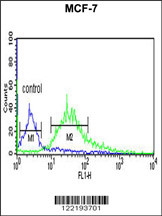 LXN Antibody (Cat. APR06207G) flow cytometric analysis of MCF-7 cells (right histogram) compared to a negative control cell (left histogram).FITC-conjugated goat-anti-rabbit secondary antibodies were used for the analysis. |