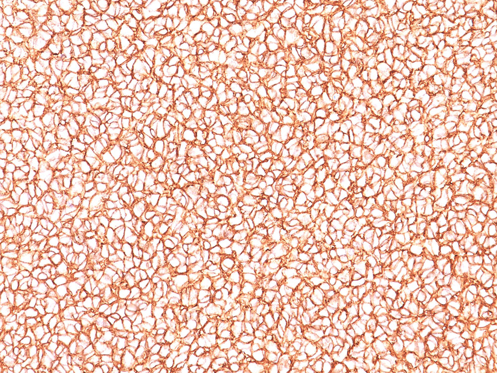 Formalin-fixed, paraffin-embedded human Ewing’s sarcoma stained with CD99 MAb (HO36-1.1). |