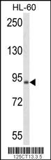 Western blot analysis of anti-BRAF Antibody in HL-60 cell line lysates (35μg/lane). BRAF (arrow) was detected using the purified Mab. |