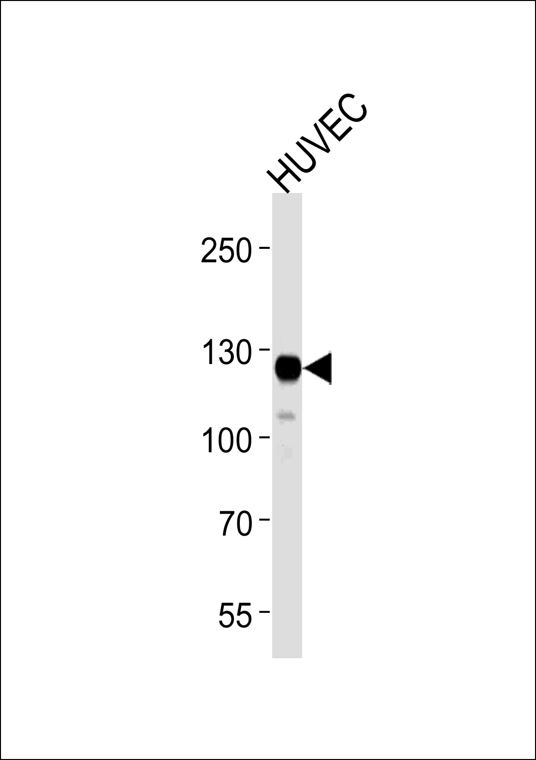 Western blot analysis of lysate from HUVEC cell line,using PTK2 Antibody (N-term)(Cat. AMM02479G).AMM02479G was diluted at 1:1000 at each lane. A goat anti-mouse IgG H&L(HRP) at 1:3000 dilution was used as the secondary antibody.Lysate at 35μg per lane. |