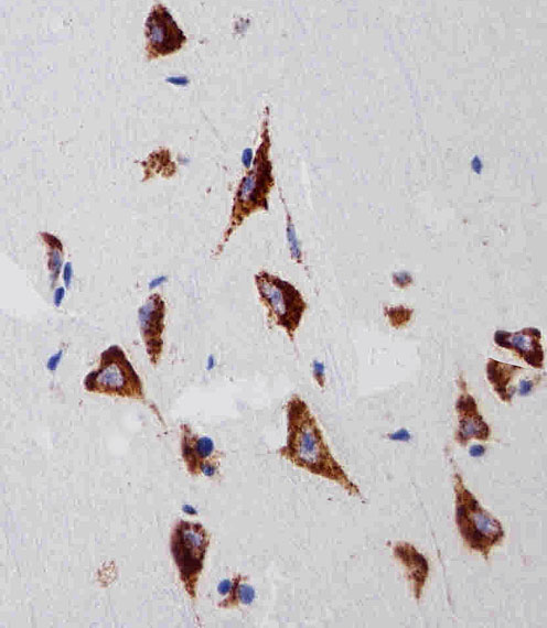 Immunohistochemical analysis of paraffin-embedded H. brain section using RPS6 Antibody (N-term)( AMM02508G). AMM02508G was diluted at 1:25 dilution. A peroxidase-conjugated goat anti-mouse IgG at 1:400 dilution was used as the secondary antibody, followed by DAB staining.