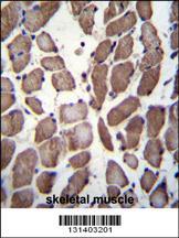 LRP12 Antibody (C-term) (Cat. APR03614G)immunohistochemistry analysis in formalin fixed and paraffin embedded human skeletal muscle followed by peroxidase conjugation of the secondary antibody and DAB staining.This data demonstrates the use of LRP12 Antibody (C-term) for immunohistochemistry. Clinical relevance has not been evaluated.