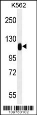TRIM28 Antibody (N-term) (Cat. APR03626G) western blot analysis in K562 cell line lysates (35ug/lane).This demonstrates the TRIM28 antibody detected the TRIM28 protein (arrow).