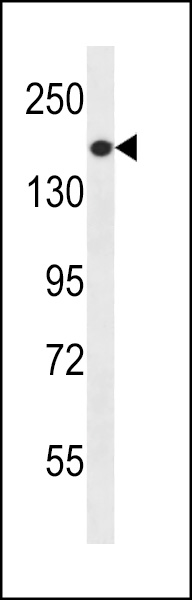 PREX1 Antibody (C-term) (Cat. APR03713G) western blot analysis in NCI-H460 cell line lysates (35ug/lane).This demonstrates the PREX1 antibody detected the PREX1 protein (arrow). |