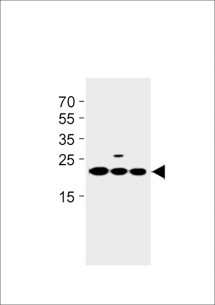 TMEM199 Antibody (N-term) (Cat. APR04540G) western blot analysis in A549,293,U251 cell line lysates (35ug/lane).This demonstrates the TMEM199 antibody detected the TMEM199 protein (arrow). |
