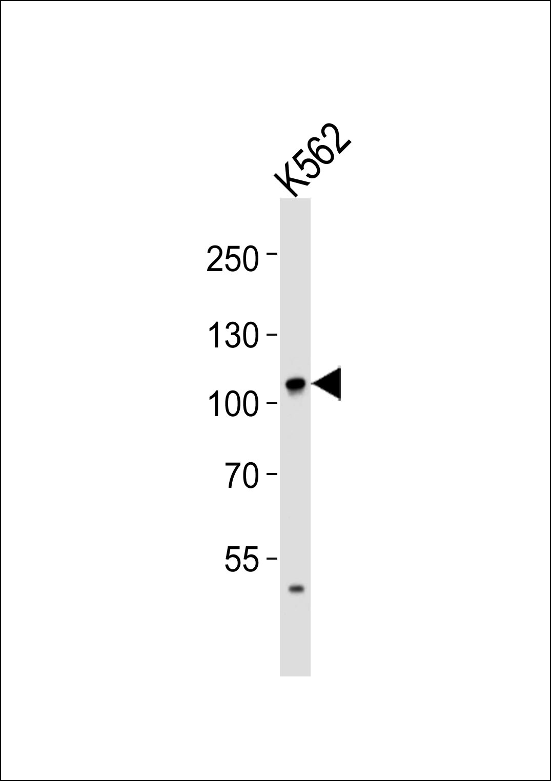 Western blot analysis of lysate from K562 cell line, using EIF4G2 Antibody (N-term) (APR04630G). APR04630G was diluted at 1:1000. A goat anti-rabbit IgG H&L(HRP) at 1:5000 dilution was used as the secondary antibody. Lysate at 35ug. |
