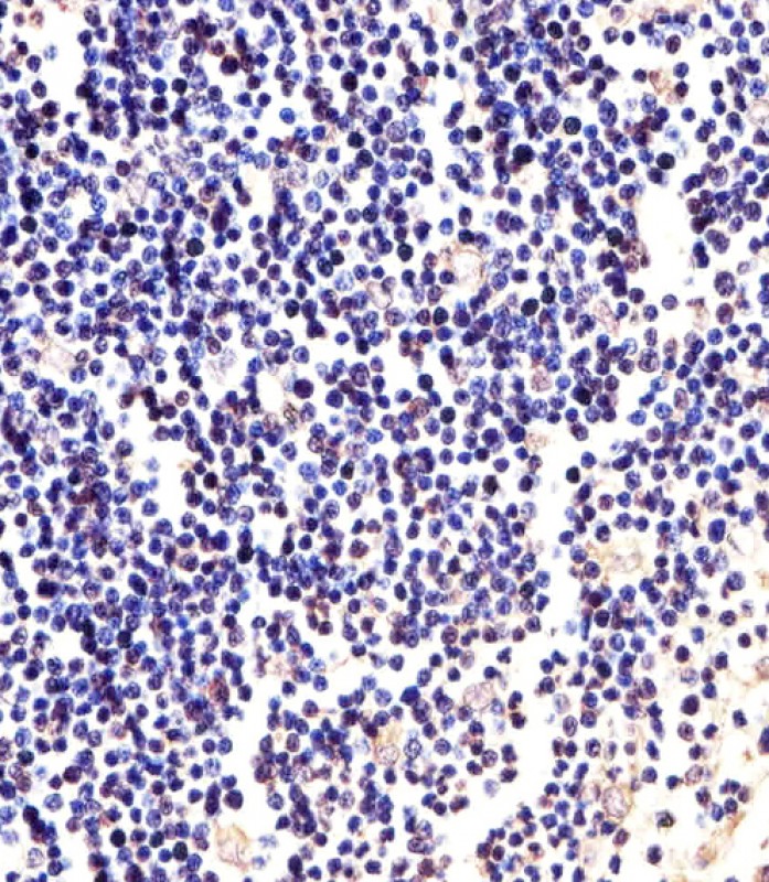 Immunohistochemical analysis of paraffin-embedded H. thymus section using ANAPC2 Antibody (C-term)( APR04767G). APR04767G was diluted at 1:25 dilution. A undiluted biotinylated goat polyvalent antibody was used as the secondary, followed by DAB staining.