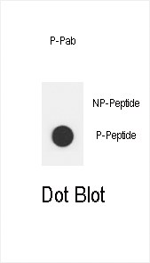 Dot blot analysis of Phospho-ERBB2-Y1112 Phospho-specific Pab (Cat. APR05120G) on nitrocellulose membrane. 50ng of Phospho-peptide or Non Phospho-peptide per dot were adsorbed. Antibody working concentrations are 0.6ug per ml. |