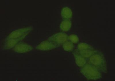 Immunocytochemistry stain of Hela using Hsp70 (N-terminus) mouse mAb (1:300). |