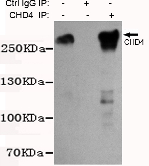 Immunoprecipitation analysis of K562 cell lysates using CHD4 mouse mAb. |