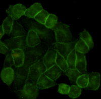 Immunocytochemistry staining of HeLa cells using EGFR mouse mAb (dilution 1:200).