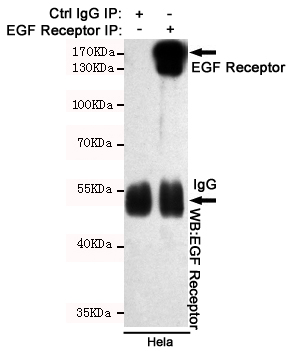 Immunoprecipitation analysis of Hela cell lysates using EGFR mouse mAb. |