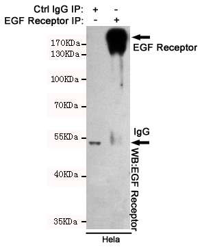Immunoprecipitation analysis of Hela cell lysates using EGFR mouse mAb. |