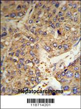 FGG Antibody (C-term) (RB18714) IHC analysis in formalin fixed and paraffin embedded human hepatocarcinoma tissue followed by peroxidase conjugation of the secondary antibody and DAB staining. This data demonstrates the use of the FGG Antibody (C-term) for immunohistochemistry. Clinical relevance has not been evaluated.