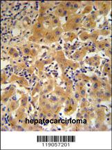 CP Antibody (N-term) (Cat.APR05892G) IHC analysis in formalin fixed and paraffin embedded human hepatocarcinoma followed by peroxidase conjugation of the secondary antibody and DAB staining. This data demonstrates the use of the CP Antibody (N-term) for immunohistochemistry. Clinical relevance has not been evaluated.