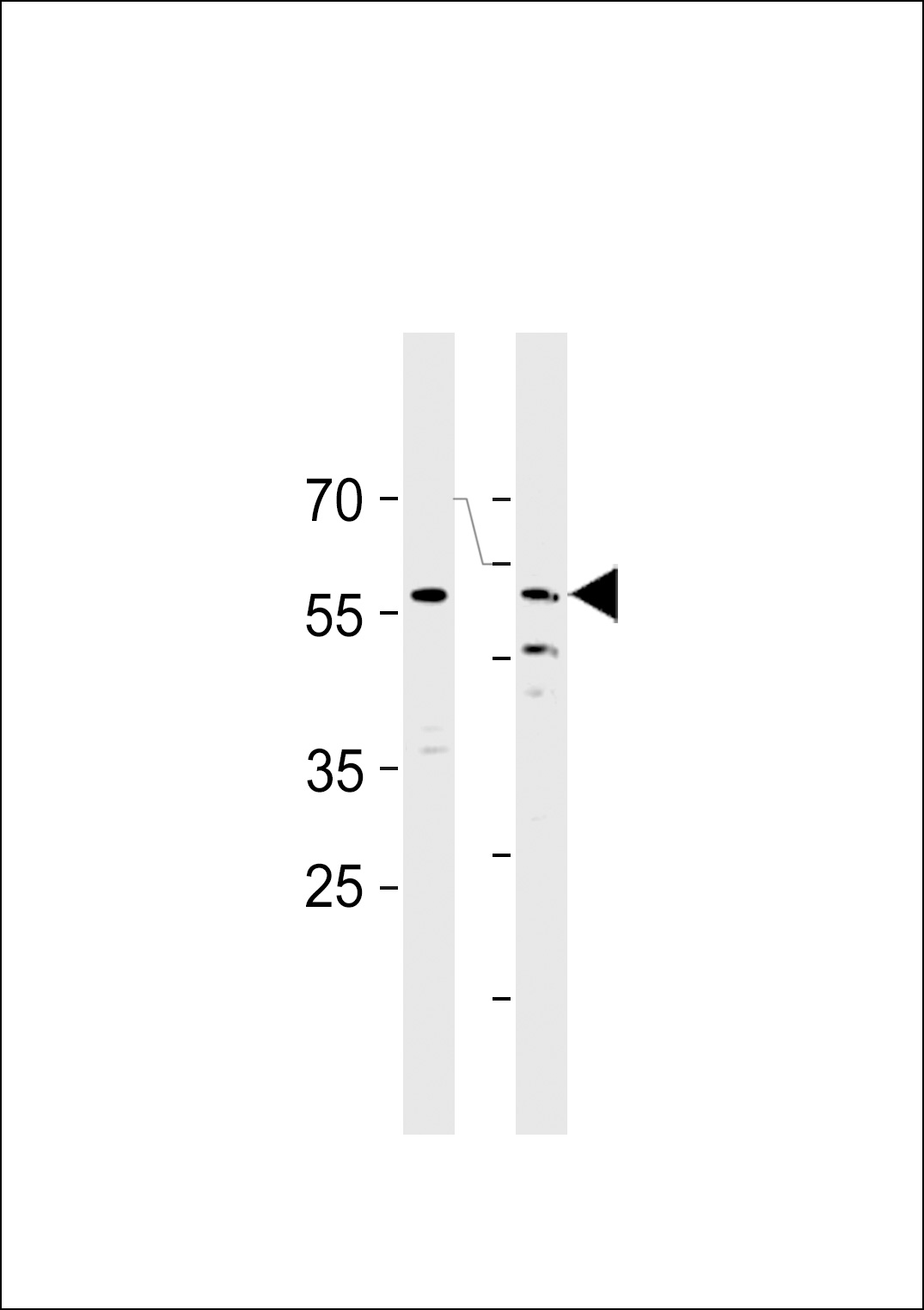 HCDC7L1 Antibody (M9) (Cat. APR05920G) western blot analysis in MCF-7 cell line lysates (35ug/lane).This demonstrates the HCDC7L1 antibody detected the HCDC7L1 protein (arrow). |