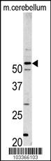 Western blot analysis of PFTK1 antibody (N-term) (Cat.APR05931G) in mouse cerebellum tissue lysates (35ug/lane). PFTK1 (arrow) was detected using the purified Pab. |