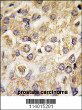 Formalin-fixed and paraffin-embedded human prostata carcinoma tissue reacted with MAP2K2 Antibody (T394) (Cat.APR06044G), which was peroxidase-conjugated to the secondary antibody, followed by DAB staining. This data demonstrates the use of this antibody for immunohistochemistry; clinical relevance has not been evaluated. |