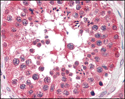 Figure 2: Immunohistochemical analysis of paraffin-embedded human testis tissues using BRAF mouse mAb.