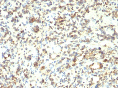 Recognizes a phosphor-protein of 45kDa, identified as MyoD1. This MAb does not cross react with myogenin, Myf5, or Myf6. Antibody to MyoD1 labels the nuclei of myoblasts in developing muscle tissues. MyoD1 is not detected in normal adult tissue, but is highly expressed in the tumor cell nuclei of rhabdomyosarcomas. Occasionally nuclear expression of MyoD1 is seen in ectomesenchymoma and a subset of Wilm s tumors. Weak cytoplasmic staining is observed in several non-muscle tissues, including glandular epithelium and also in rhabdomyosarcomas, neuroblastomas, Ewing s sarcomas and alveolar soft part sarcomas.