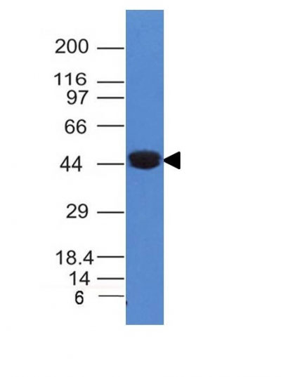 Western Blot Analysis of A431 Cell Lysate using Cytokeratin 8 Monoclonal Antibody (K8/383).
