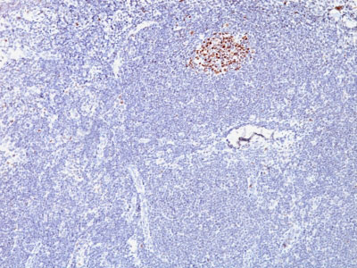 Recognizes a protein of 95kDa, which is identified as Bcl-6. Antibody to bcl-6 is helpful in a number of diagnostic settings: (1) In the differential diagnosis of small B-cell lymphoma. Follicular lymphoma will show bcl-6 (and CD10) positivity whereas other small B-cell lymphomas are usually negative. (2) Bcl-6 is an important prognostic marker in diffuse large B-cell lymphomas (DLBCL), where CD10, bcl-6 and MUM1/IRF4 are used to identify germinal center and activated B-cell phenotypes. (3) Bcl-6 can be valuable in distinguishing classical Hodgkin lymphoma from nodular lymphocyte predominant Hodgkin lymphoma (NLPHL). The Reed-Sternberg cells of classical Hodgkin lymphoma are bcl-6 negative whereas the large (?L&H?) cells of NLPHL are bcl-6 positive. In contrast, anti-Bcl-6 rarely stains mantle-cell lymphoma and MALT lymphoma.