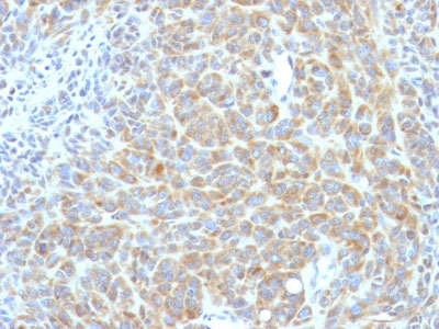 Formalin-fixed, paraffin-embedded human Melanoma stained with bcl-6 Monoclonal Antibody (PG-B6P). |