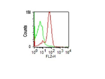 FACS Analysis of human PBMC with CD43 Monoclonal Antibody (DF-T1) (red) or isotype control (green). |