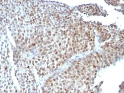 Formalin-fixed, paraffin-embedded human Bladder Carcinoma stained with p53 Monoclonal Antibody (SPM589). |