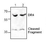 Western blot analysis of DR4 expression in Jurkat cell lysate. |