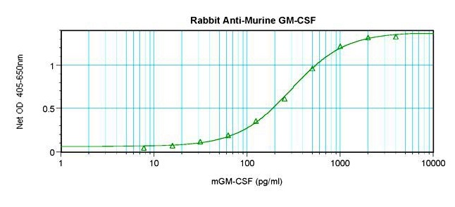 To detect mGM-CSF by sandwich ELISA (using 100 μl/well antibody solution) a concentration of 0.5 - 2.0 μg/ml of this antibody is required. This antibody allows the detection of at least 0.2 - 0.4 ng/well of recombinant mGM-CSF. |