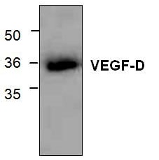 Western blot analysis of VEGF-D using recombinant human VEGF-D (50 ng). |