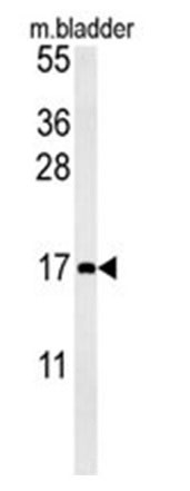 CCL4 Antibody (Center) western blot analysis in mouse bladder tissue lysates (15 μg/lane).This demonstrates the CCL4 antibody detected CCL4 protein (arrow).