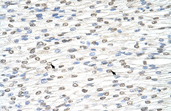 Rabbit Anti-MGC42174 Antibody Paraffin Embedded Tissue: Human Heart Cellular Data: Myocardial cells Antibody Concentration: 4.0-8.0 μg/ml Magnification: 400X