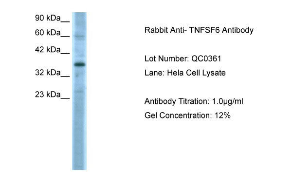 Host: Rabbit Target Name: TNFSF6 Sample Tissue: Hela Cell Antibody Dilution: 1.0μg/ml |